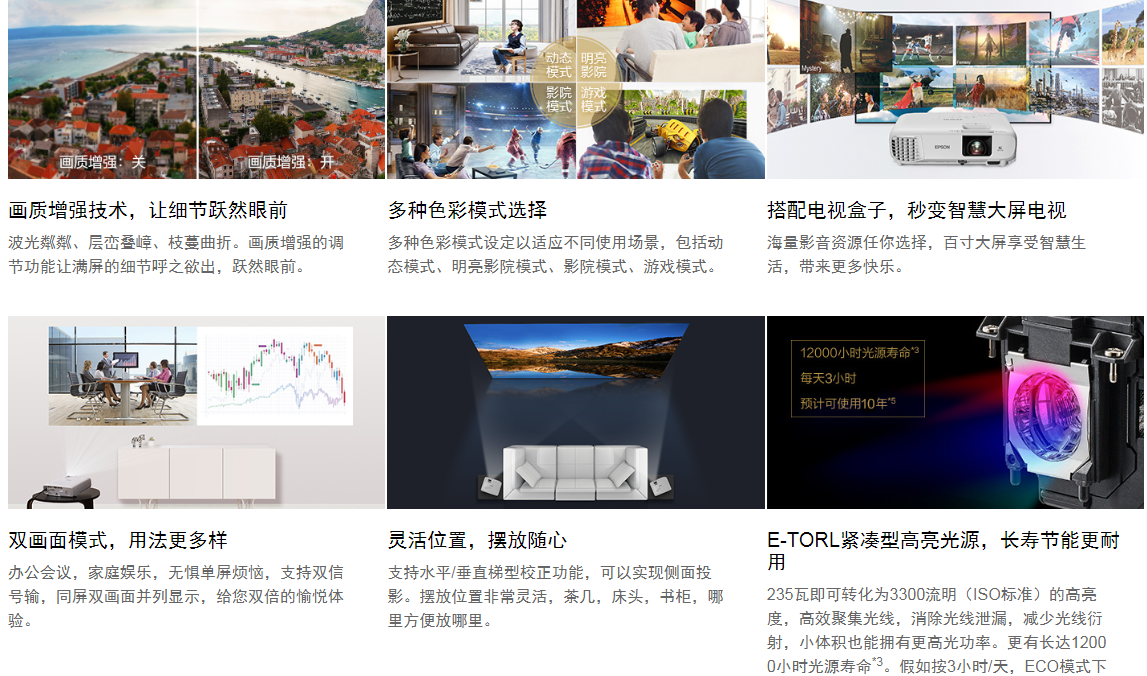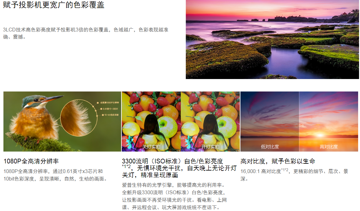 | 關(guān)鍵詞: | 3LCD智選家庭影院投影機 3LCD顯示技術(shù),更廣色域覆蓋 東莞總代理 |